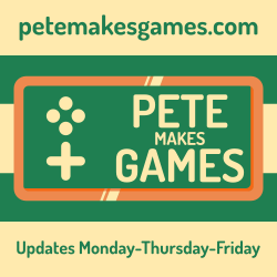 The Pete Makes Games Podcast is a daily (M-F), five-minute podcast about my game development objectives and musings for the day. What I plan to get done, what I'm thinking about, and what I hope for the future, all in five, short minutes.